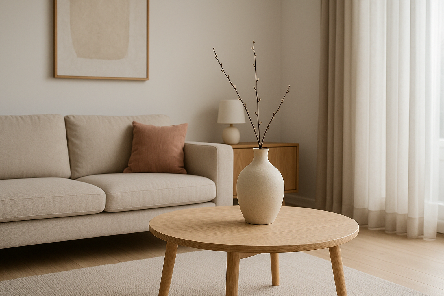 Tactus Oval Dalgalı Bej Seramik Dekoratif Vazo (21x14 cm)