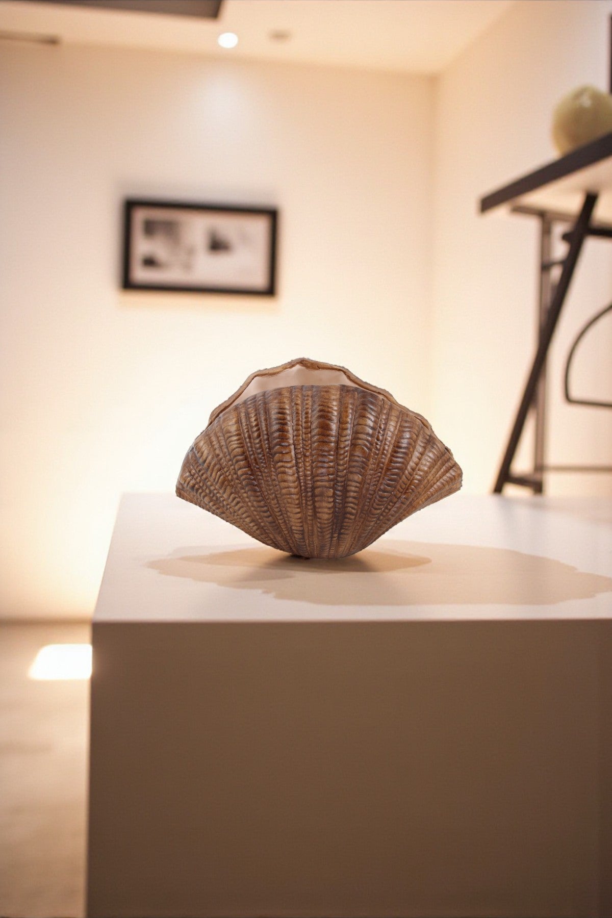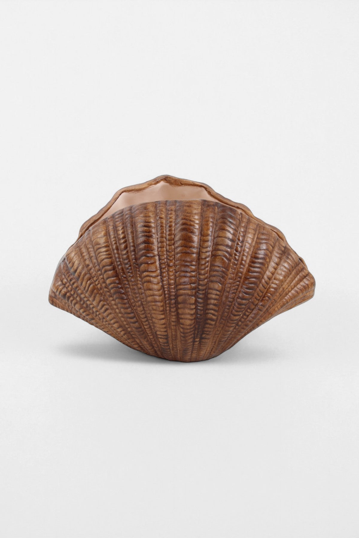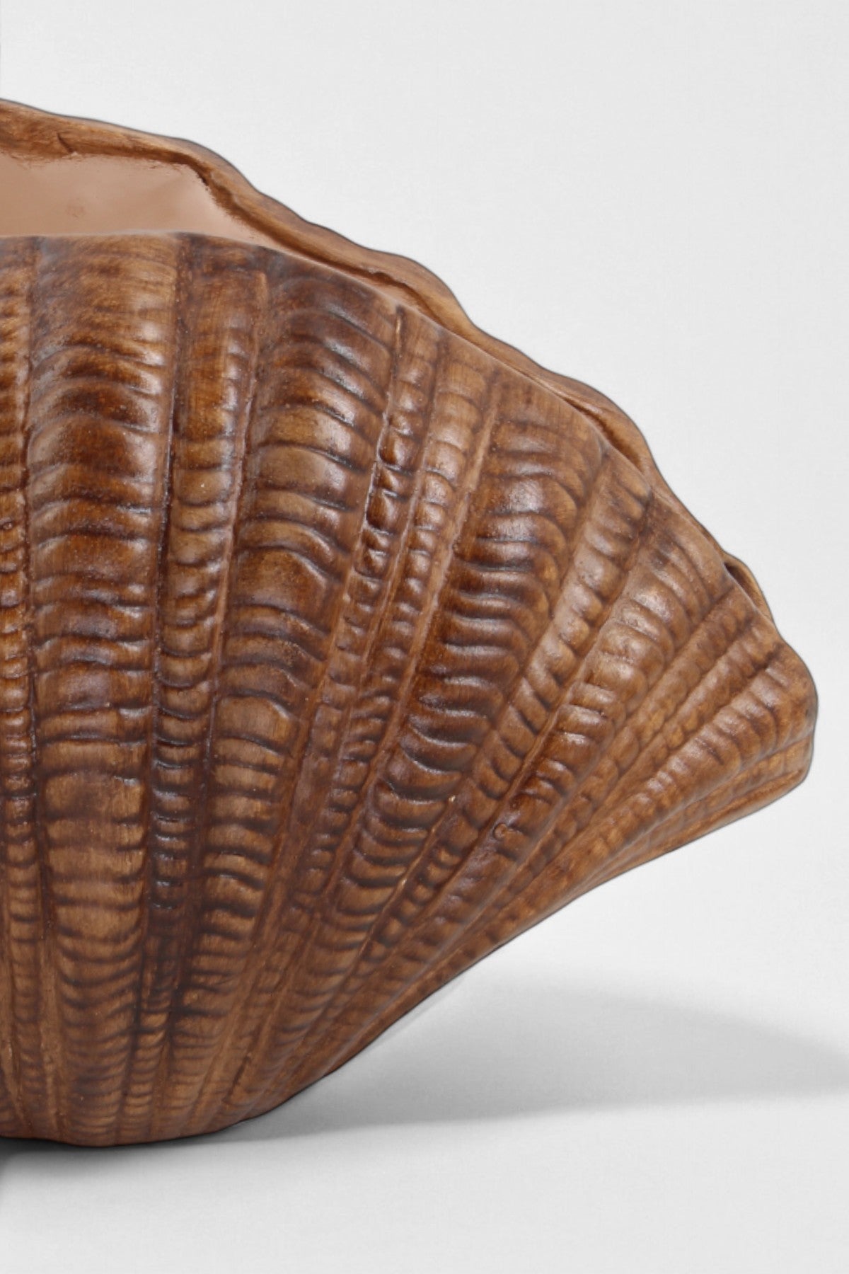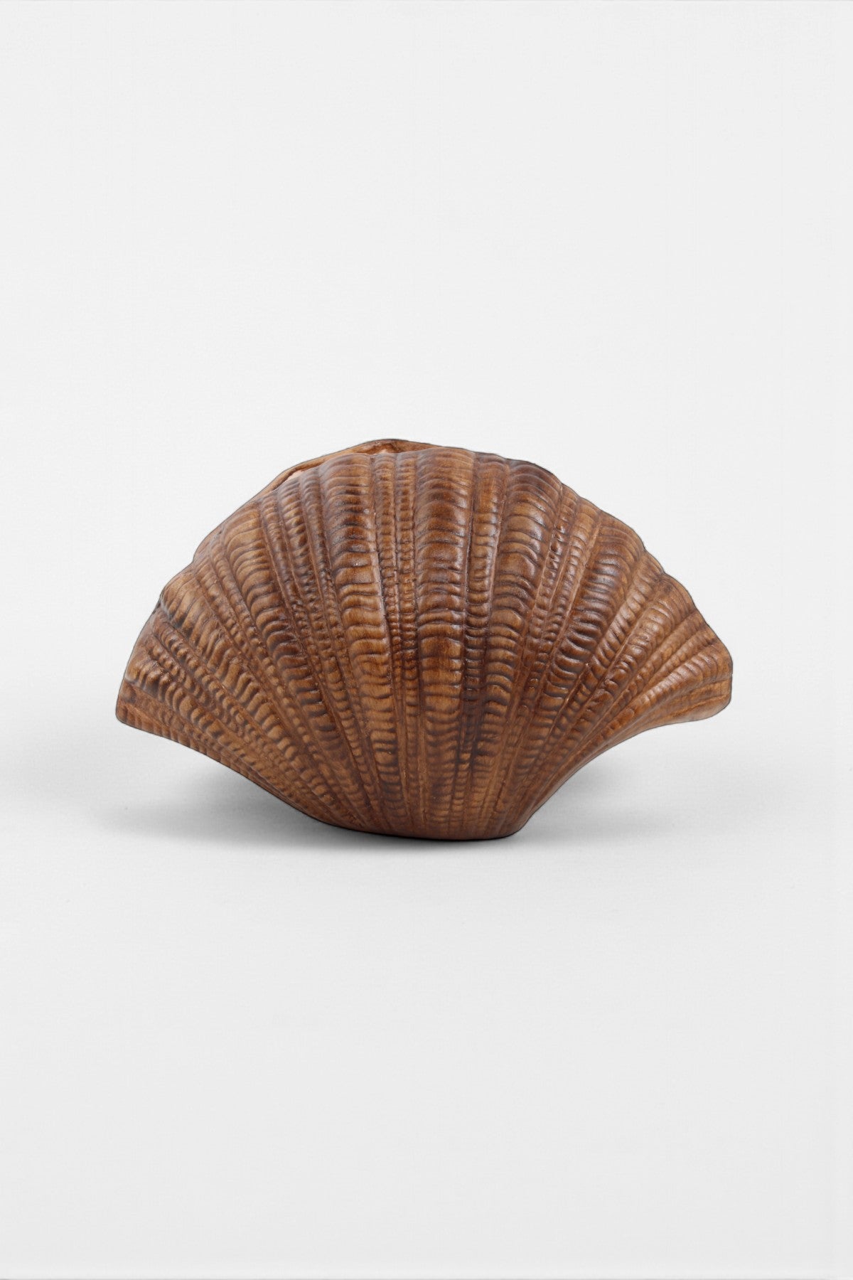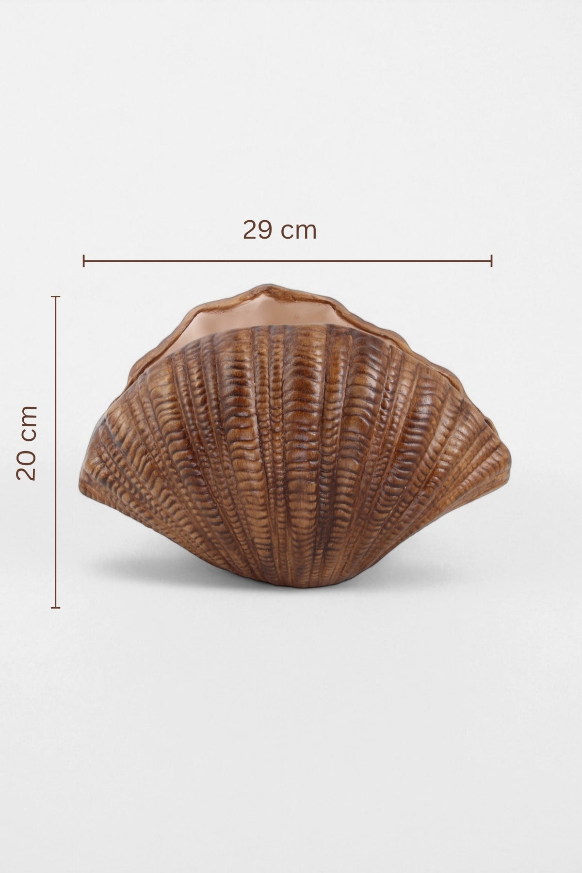 Mira Ahşap Dokulu Seramik Midye Vazo 20x29 cm