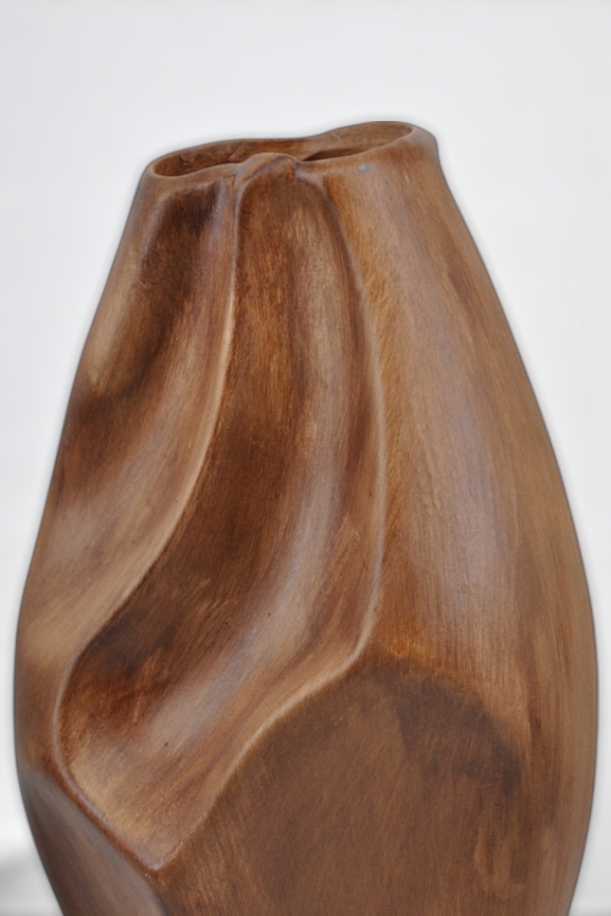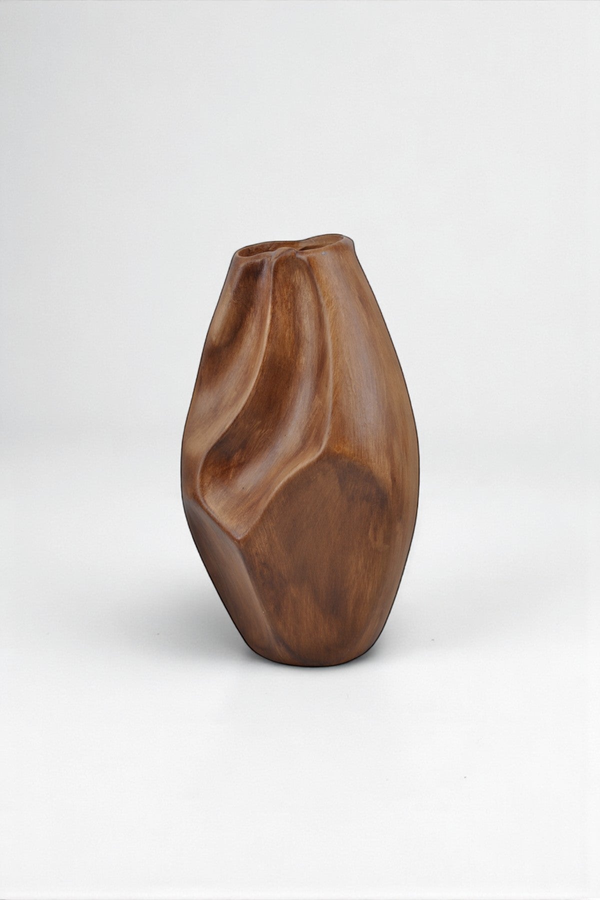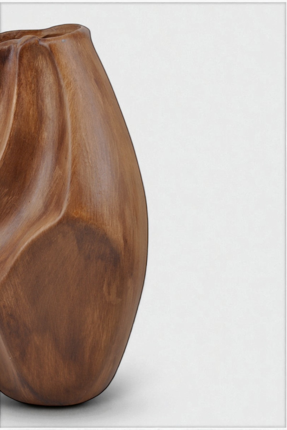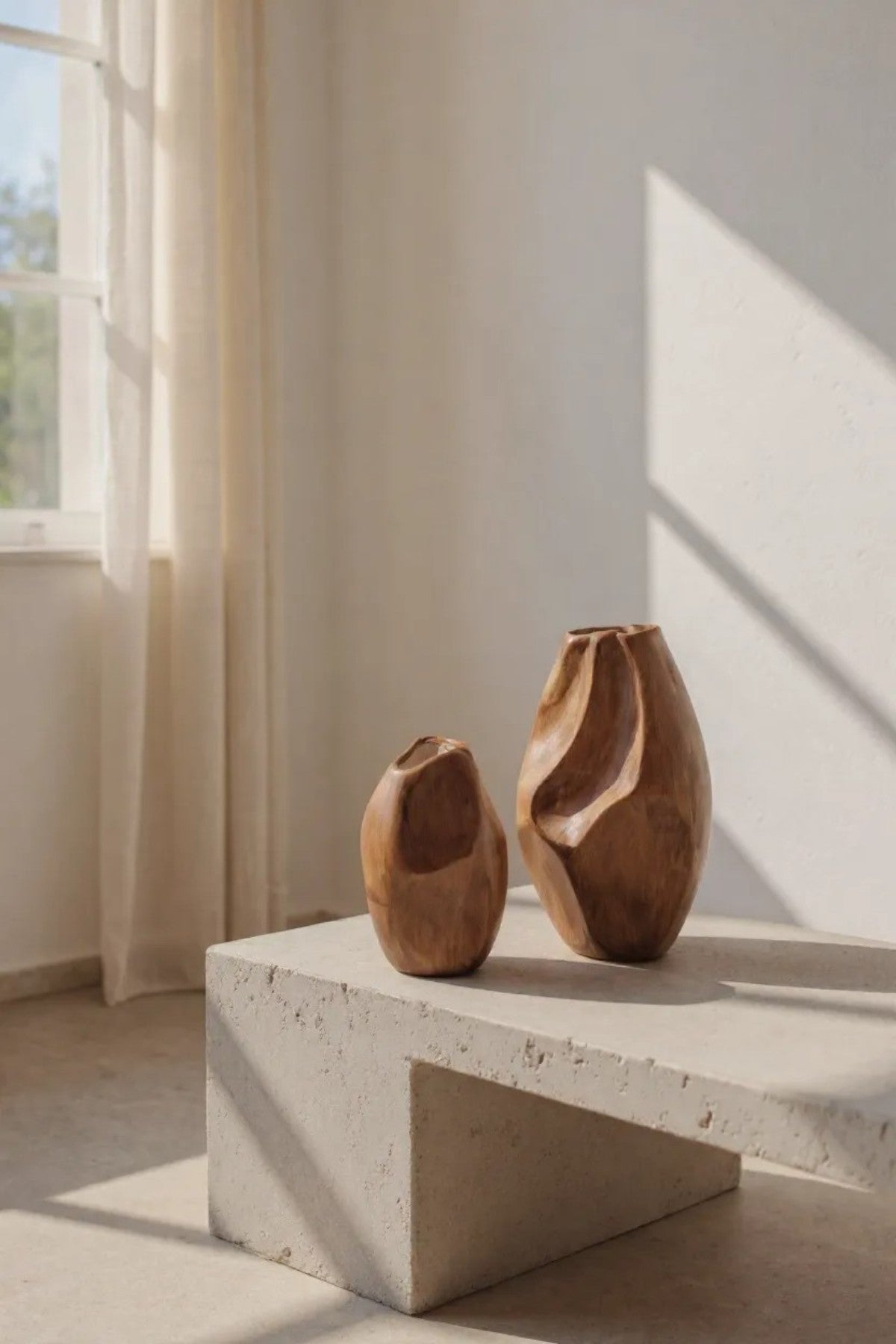 Rune Boho 2'li Ahşap Dokulu Seramik Vazo Seti