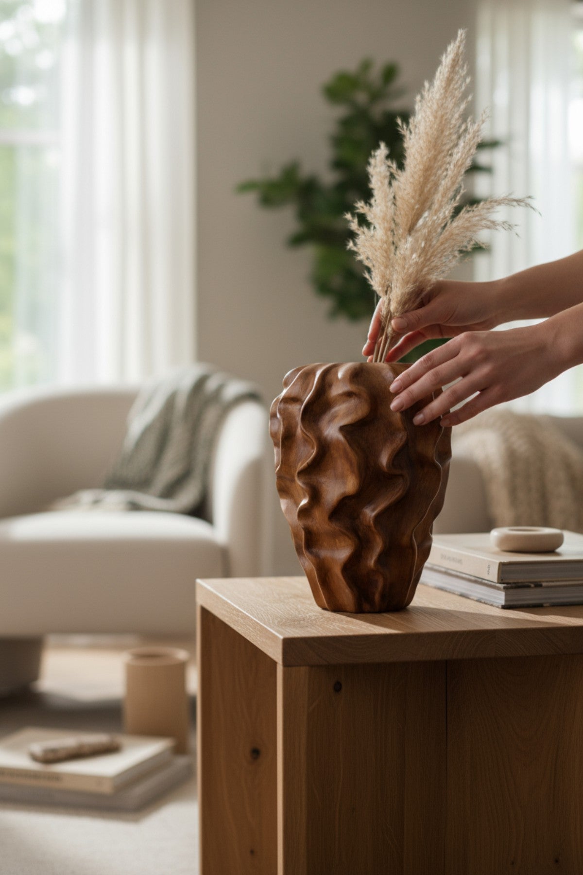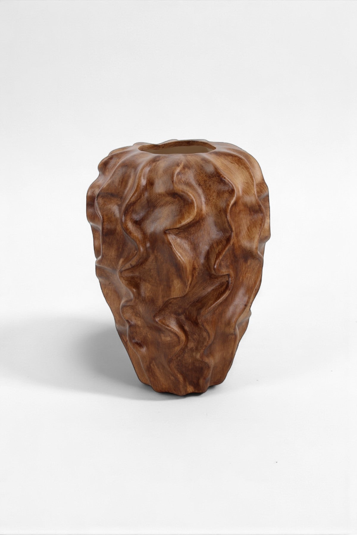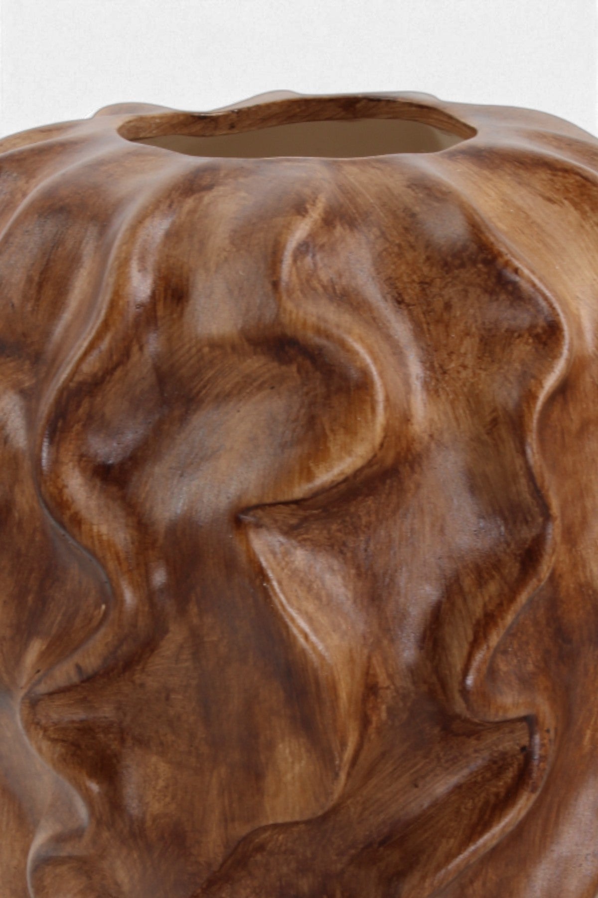 Serenité Ahşap Dalgalı Sarmaşık Desenli Seramik Vazo (18x25.5 cm)